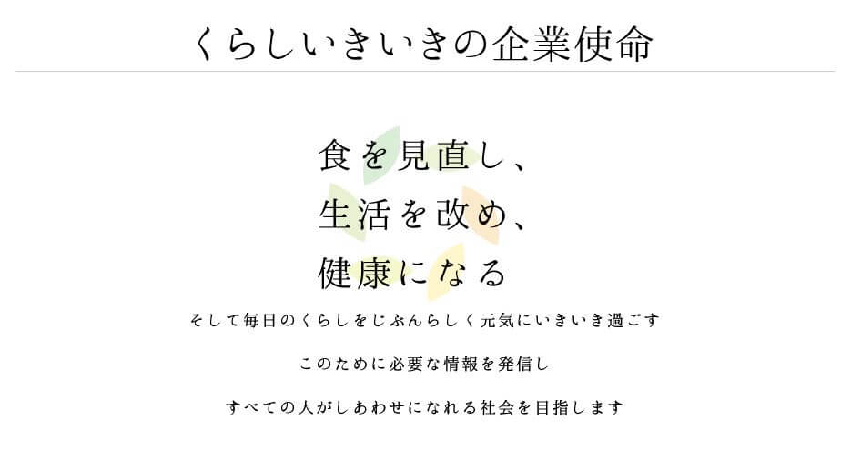 くらしいきいきは、「食と健康」を事業ドメインとして、皆様の健やかで豊かな暮らしを応援する商品を提案しております。
